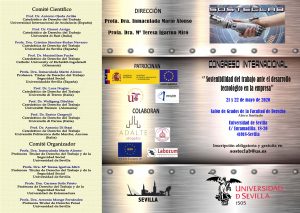 os informamos de que los días 21 y 22 de Mayo de 2020 tendrá lugar, en el Salón de Grados de la Facultad de Derecho de la Universidad de Sevilla, el Congreso Internacional sobre «“Sostenibilidad del trabajo ante el desarrollo tecnológico en la empresa”.